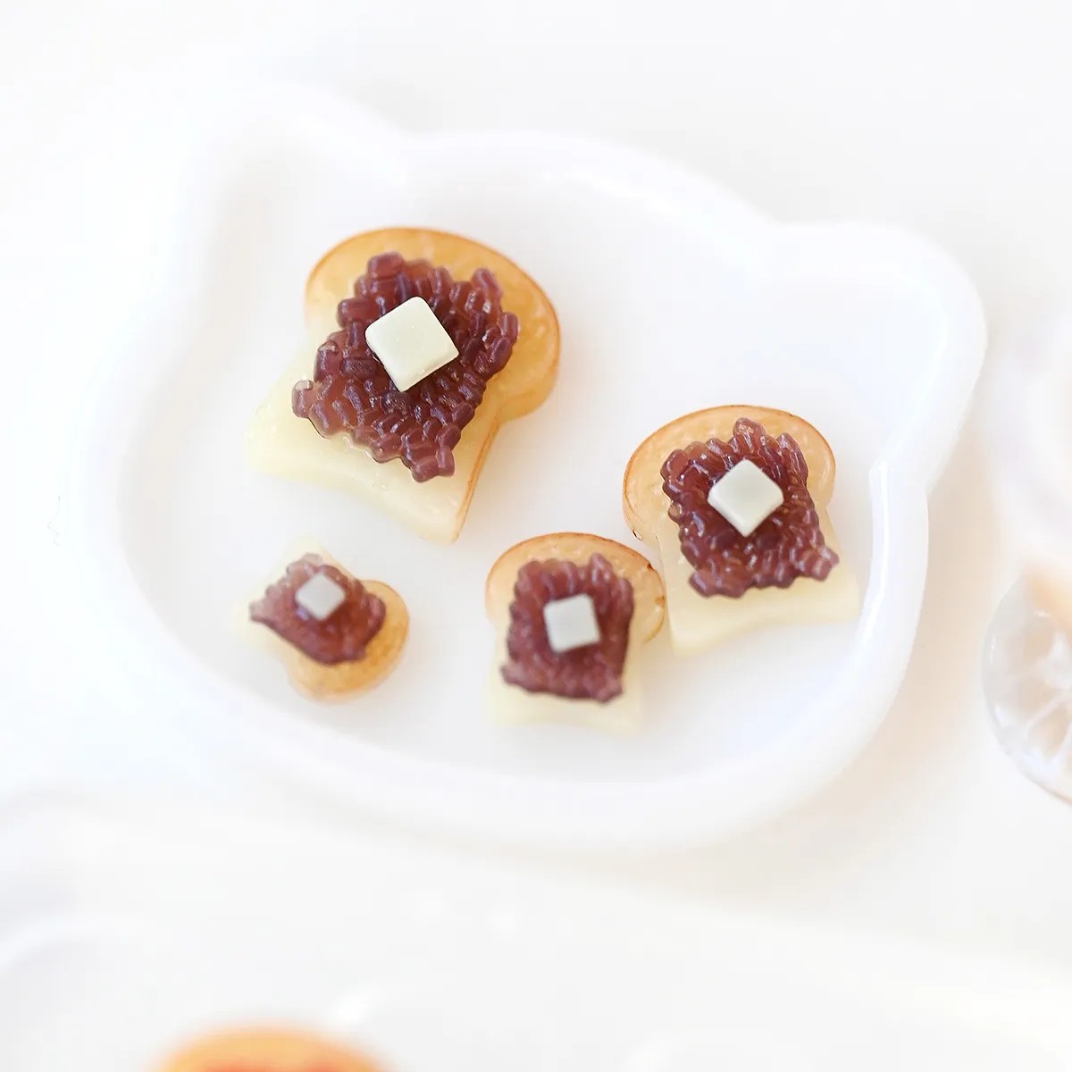 它完美復刻了麵包表面的細微紋理,讓你做出逼真的麵包。只要塗抹奶油和醬料,就能輕鬆打造可愛的吐司造型。創意無限——草莓醬吐司、紅豆泥吐司等等,應有盡有!改變麵包的顏色,還能做出巧克力或草莓口味的吐司。非常適合製作