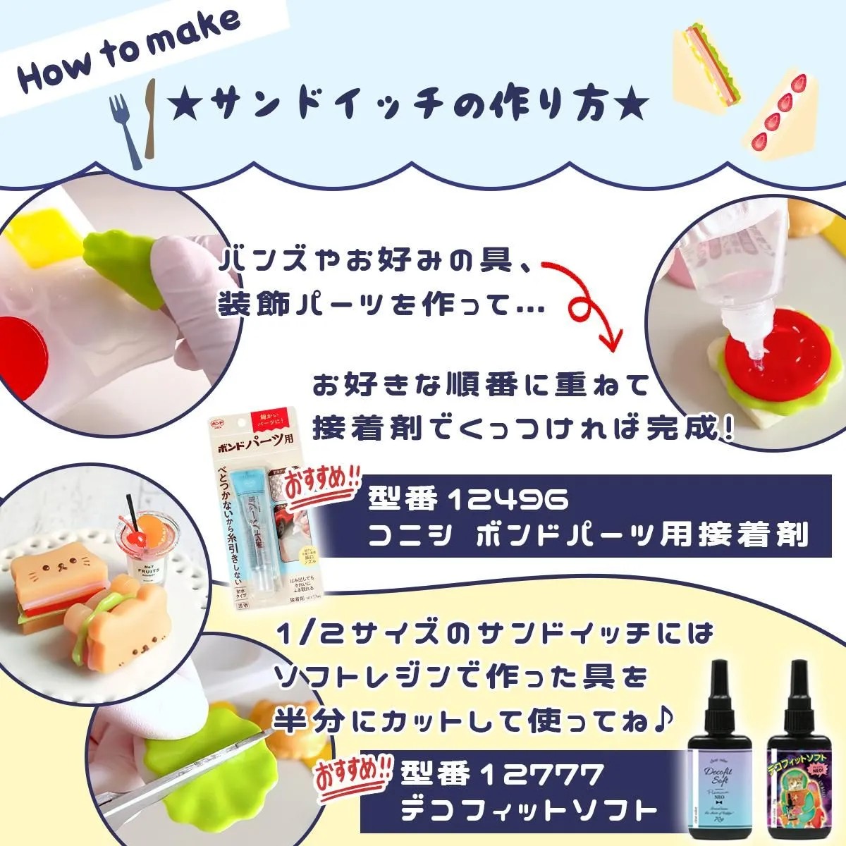 您不僅可以製作麵包,還可以製作生菜、番茄等餡料,以及動物臉等裝飾零件!盡情發揮創意,組合您喜歡的顏色和部件吧!