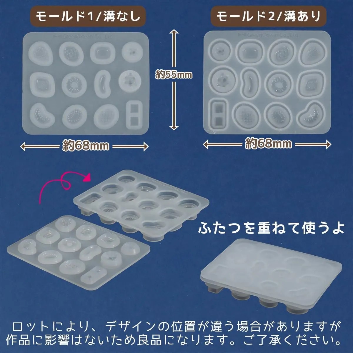 ○模具尺寸:約55 x 68 x 10.5毫米(2個模具疊放後的尺寸)
